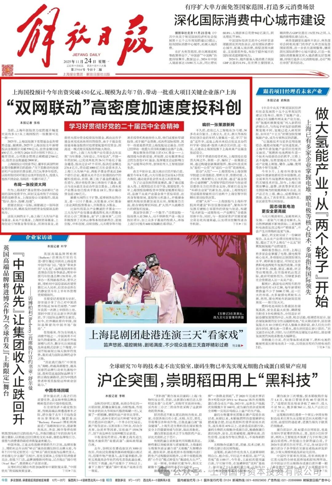 解放日报头条聚焦丨上海国投:“双网联动”高密度加速投科创